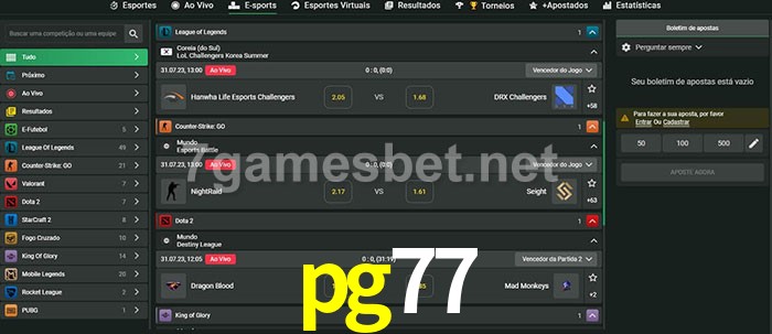 A aposta pg77 oferece aos jogadores a experiência mais conveniente de apostas em eSports!
